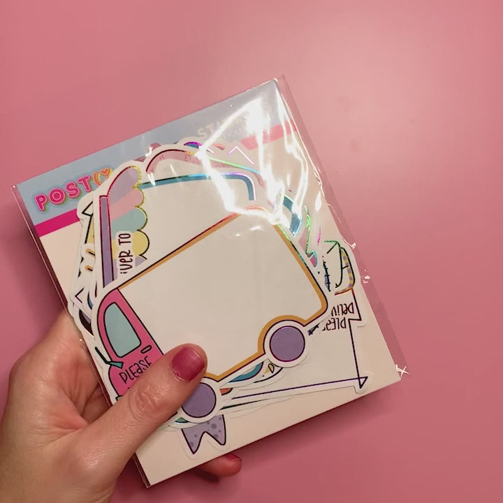 Make your happy mail shine with these vibrant rainbow foiled 'Please Deliver To' labels.