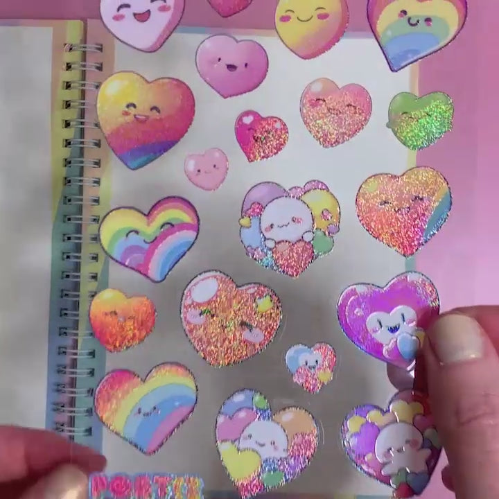 Kawaii Hearts A6 Clear Hologram Sticker Sheet