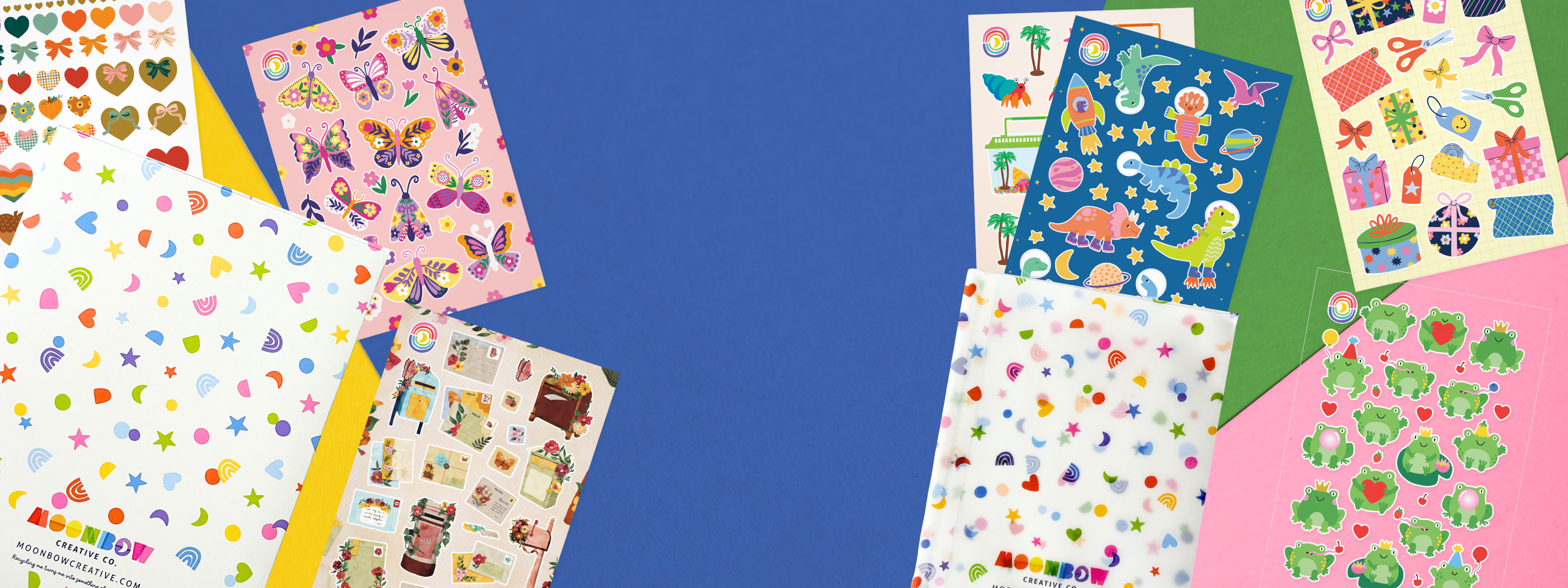 At Moonbow, we believe in living mindfully, connecting with others, and daring to be unapologetically you. That spirit shines through in every design—thoughtfully curated, sometimes a little offbeat, always something special. Each theme begins with the vision of sparking everyday joy through color, pattern, and play. Whether crafted in-house or created in collaboration with artists around the world, our stickers are made to be unique, collectible, and heartfelt—tiny works of art to brighten your world.