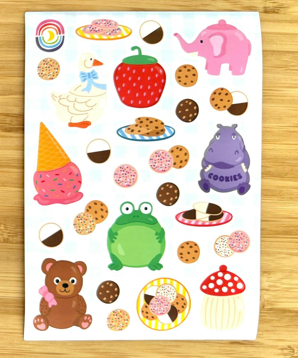 This fun sheet features 27 stickers of quirky cookie jars including a goose, bear, hippo, frog, elephant and more.