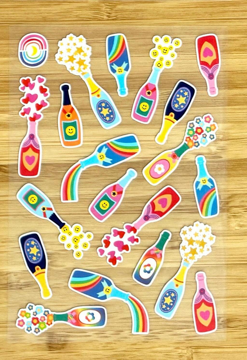 Pop the cork on pure joy with this whimsical sticker sheet.