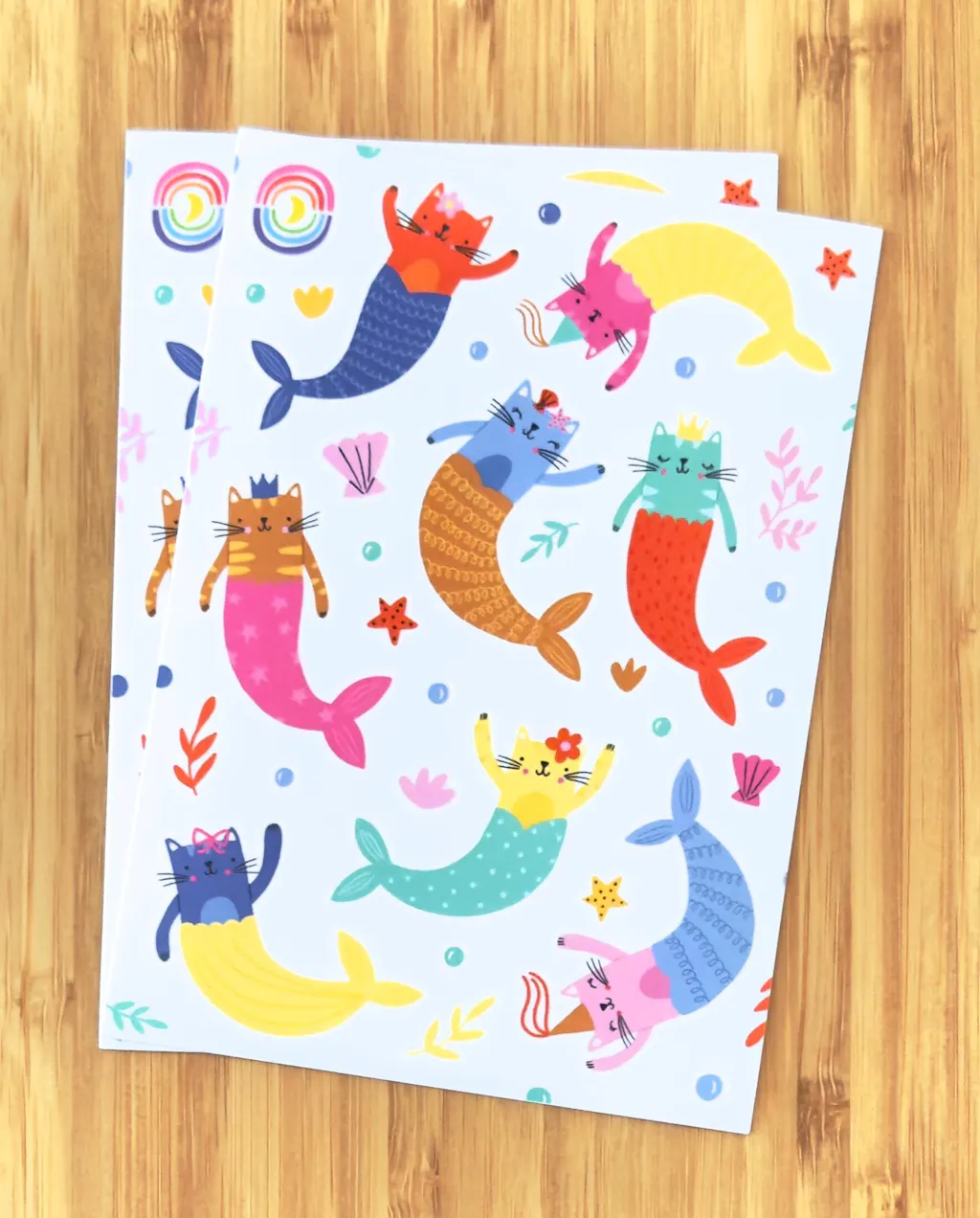 Dive into a world of magic and mischief with this adorable cat mermaid sticker sheet.