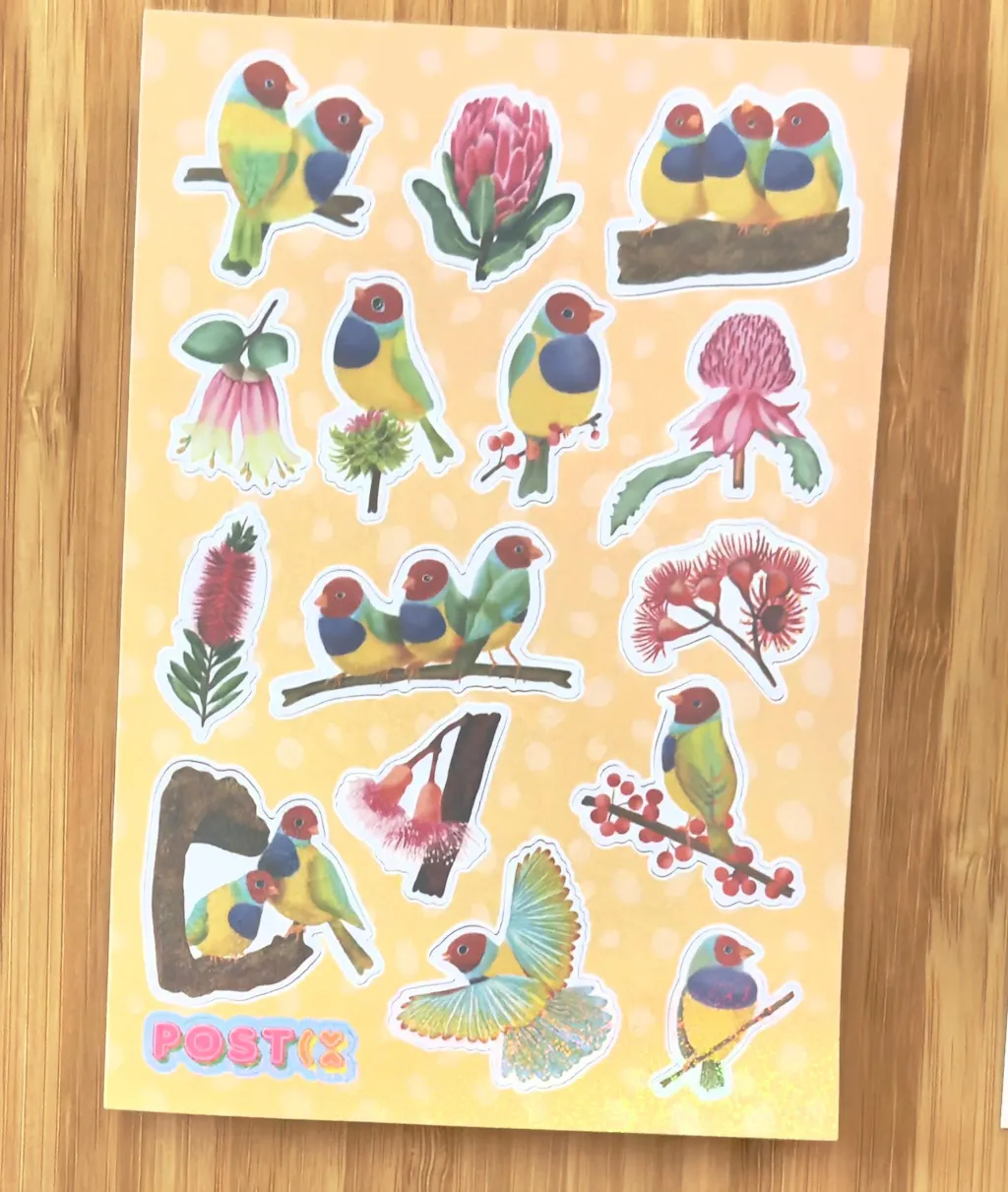 This sheet features 15 stickers of these bright and colourful birds plus a few Australian native plants.